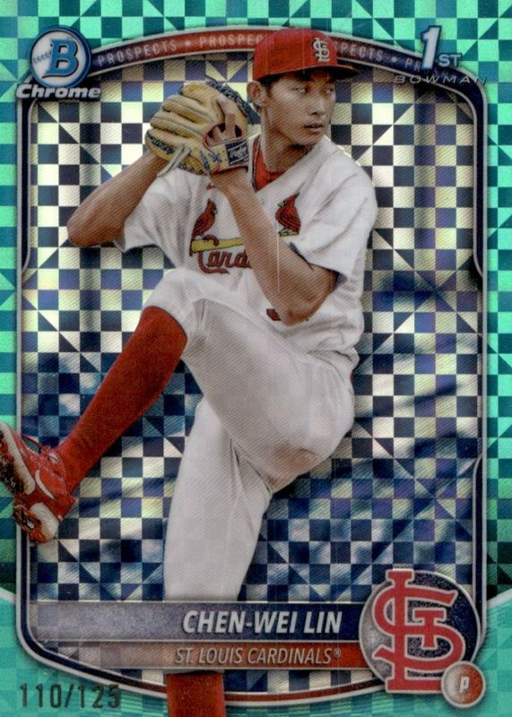 2025 Bowman CHEN-WEI LIN Chrome 1st Bowman Aqua X-Fractor 102/125 Cardinals