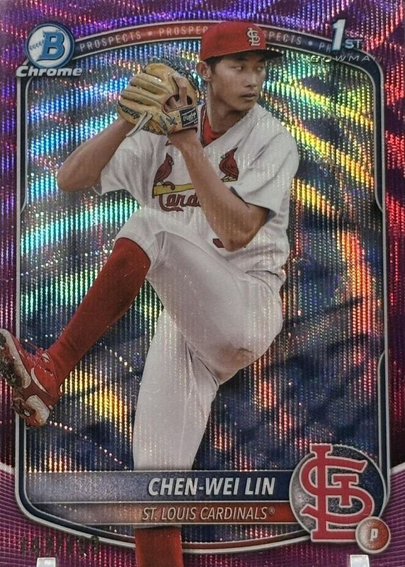2025 Bowman Chrome Chen-Wei Lin #BCP-141 Fuchsia Wave Refractor /199 Cardinals