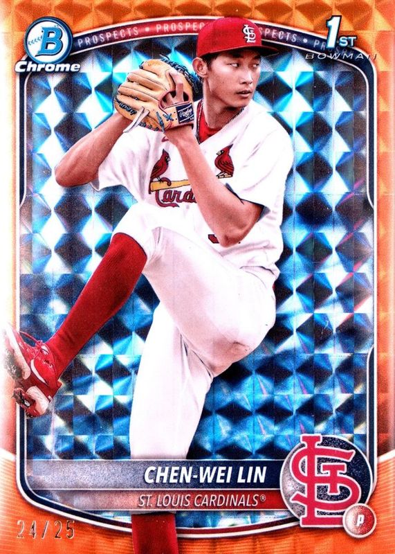 Chen-Wei Lin 2025 Bowman #BCP-141 Chrome Prospects - Orange Geometric Refractor /25 (1st) RAW Price Guide