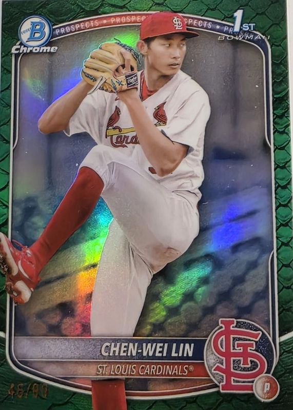 Chen-Wei Lin 2025 Bowman #BCP-141 Chrome Prospects - Reptilian Green Refractor /99 (1st) RAW Price Guide