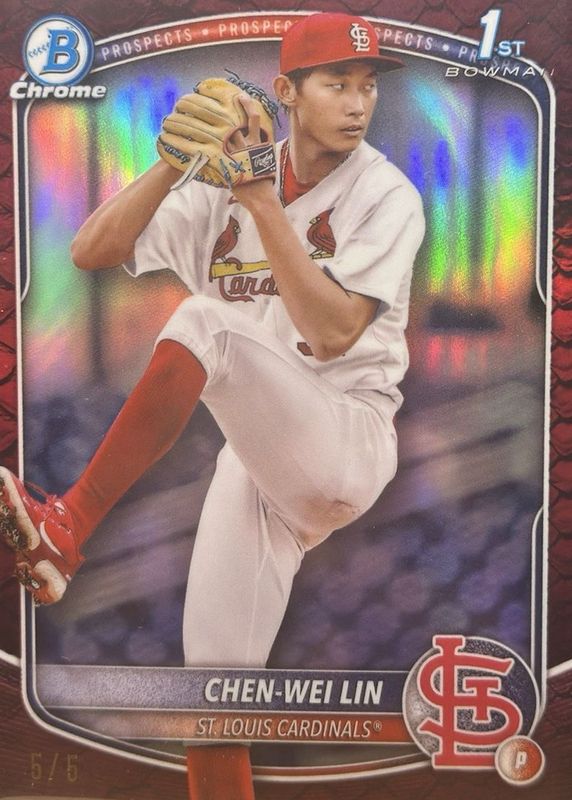 Chen-Wei Lin 2025 Bowman #BCP-141 Chrome Prospects - Reptilian Red Refractor /5 (1st) RAW Price Guide