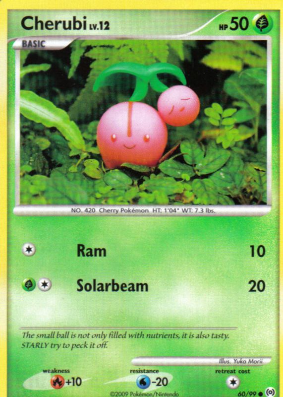 The Cherubi 2009 Platinum: Arceus #60/99 Base card in Raw TCG (Lightly Played) condition has not changed in price in the last 30 days and was last sold for $2.34 .