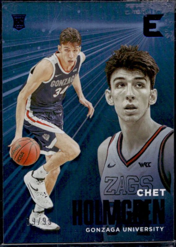 The Chet Holmgren 2022 Chronicles Draft Picks #1 Essentials - Blue /99 Rookie card is 1 of 211 Chet Holmgren's card variations in the 2022 Chronicles Draft Picks set being tracked by Sports Card Investor, including Base, Black, Bronze, Pink, and Pulsar.