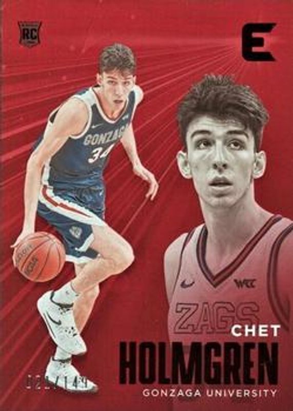 The Chet Holmgren 2022 Chronicles Draft Picks #1 Essentials - Red /149 Rookie card is 1 of 211 Chet Holmgren's card variations in the 2022 Chronicles Draft Picks set being tracked by Sports Card Investor, including Base, Black, Bronze, Pink, and Pulsar.