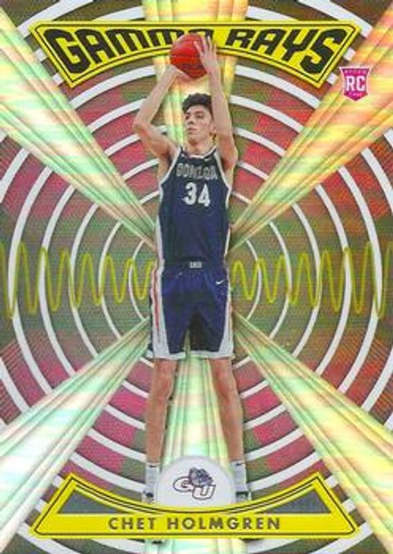 The Chet Holmgren 2022 Chronicles Draft Picks #ZG-CHE Gamma Rays Rookie card is 1 of 211 Chet Holmgren's card variations in the 2022 Chronicles Draft Picks set being tracked by Sports Card Investor, including Base, Black, Bronze, Pink, and Pulsar.