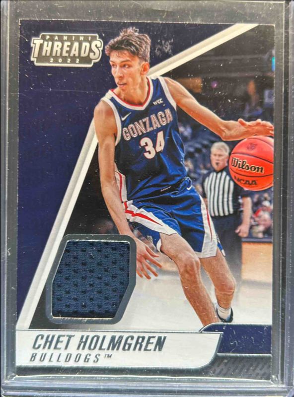 The Chet Holmgren 2022 Chronicles Draft Picks #TH-CHE Threads Rookie Memorabilia card is 1 of 211 Chet Holmgren's card variations in the 2022 Chronicles Draft Picks set being tracked by Sports Card Investor, including Base, Black, Bronze, Pink, and Pulsar.