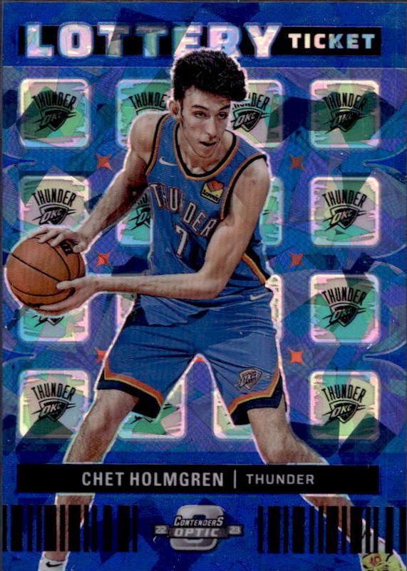 2022-23 Panini Contenders Optic Chet Holmgren /75 Lottery Ticket Blue Ice RC
