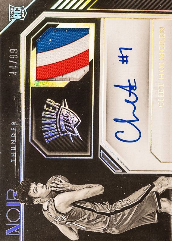The Chet Holmgren 2022 Noir #339 Rookie Patch Auto Black & White /99 card in Raw condition has not changed in price in the last 30 days and was last sold for $359.00 .