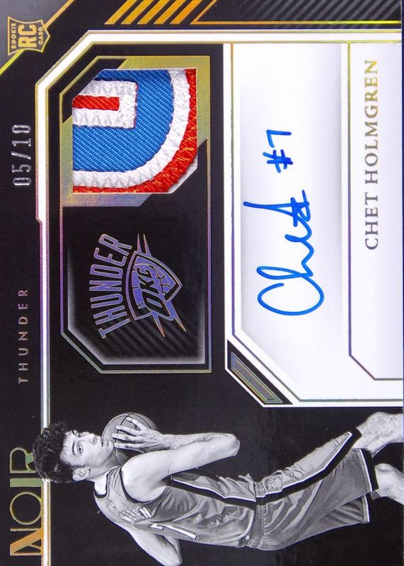 The Chet Holmgren 2022 Noir #339 Rookie Patch Auto Black & White - Gold /10 card in Raw condition has not changed in price in the last 30 days and was last sold for $587.75 .