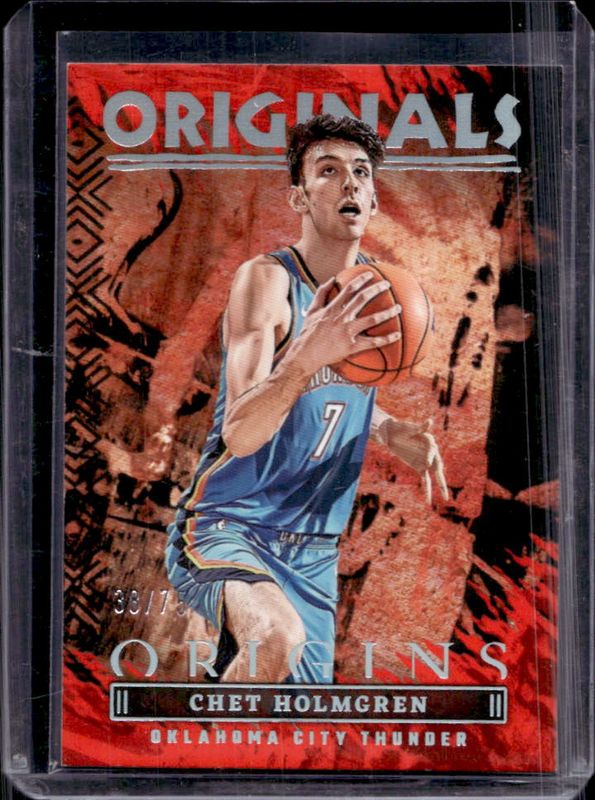 The Chet Holmgren 2022 Origins #10 Originals - Red /75 Rookie card is 1 of 54 Chet Holmgren's card variations in the 2022 Origins set being tracked by Sports Card Investor, including #75 Base, #75b Base, #75 Basketball, #75 Knight, and #75 Red.