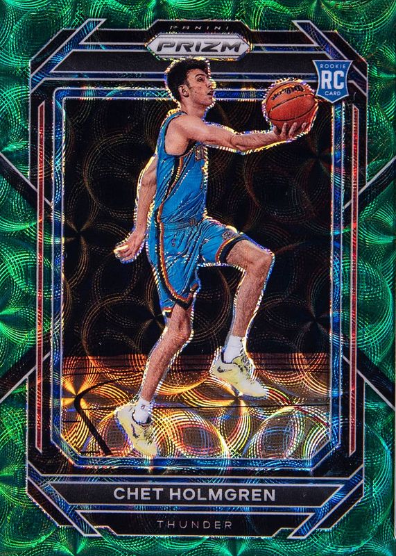 This card is 1 of 83 Chet Holmgren's card variations in the 2022 Prizm set being tracked by Sports Card Investor, including Base, Blue Wave, Choice Blue Yellow Green, Fast Break, and Green.
