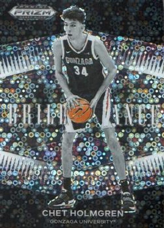 The Chet Holmgren 2022 Prizm Draft Picks #BR-CH Brilliance - Circles Rookie card is 1 of 155 Chet Holmgren's card variations in the 2022 Prizm Draft Picks set being tracked by Sports Card Investor, including #51b Base, #51 Base, #51 Blue Circles, #51b Choice Blue Yellow & Green, and #51 Choice Blue Yellow & Green.