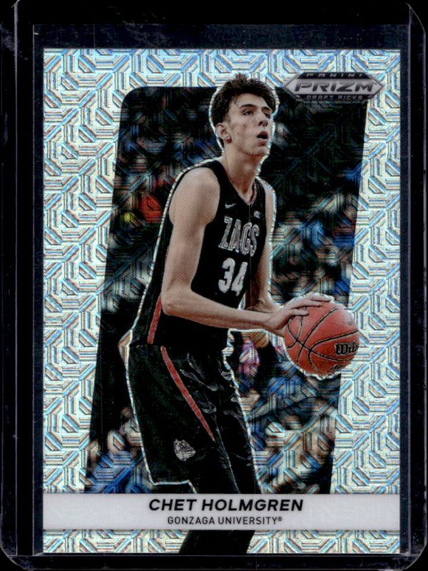 The Chet Holmgren 2022 Prizm Draft Picks #FB-CH Flashback - Mojo /25 Rookie card is 1 of 155 Chet Holmgren's card variations in the 2022 Prizm Draft Picks set being tracked by Sports Card Investor, including #51b Base, #51 Base, #51 Blue Circles, #51b Choice Blue Yellow & Green, and #51 Choice Blue Yellow & Green.