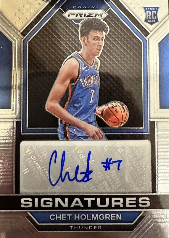 The Chet Holmgren 2022 Prizm #RSI-CHE Rookie Signatures card in Raw condition has not changed in price in the last 30 days and was last sold for $73.00 .
