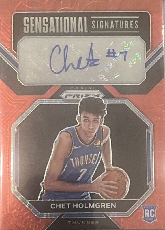 The Chet Holmgren 2022 Prizm #SS-CH Sensational Signatures - Choice Rookie card in Raw condition has not changed in price in the last 30 days and was last sold for $184.50 .