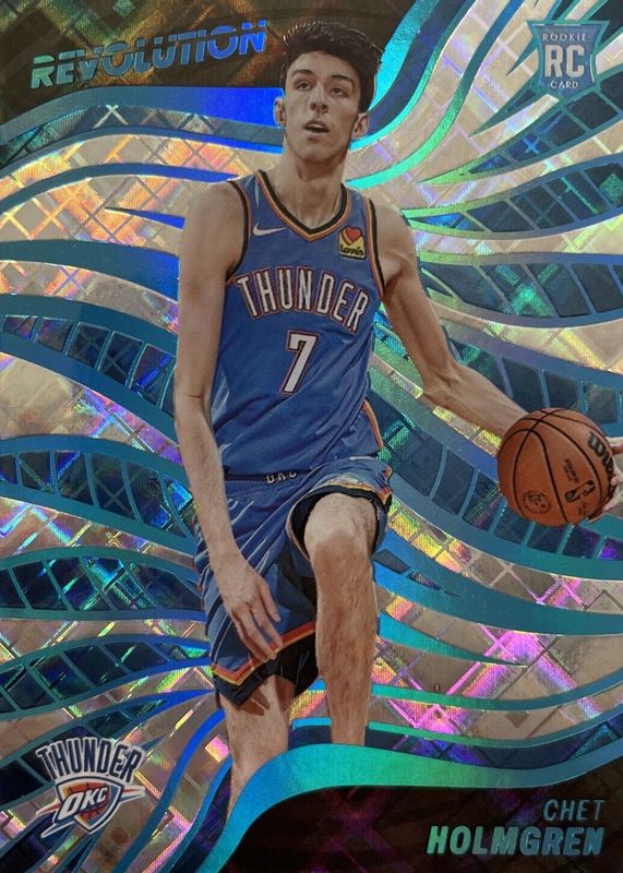 The Chet Holmgren 2022 Revolution #148 Cosmic /99 Rookie card in Raw condition has not changed in price in the last 30 days and was last sold for $21.50 .