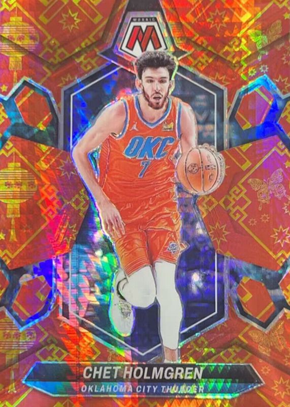 The Chet Holmgren 2023 Mosaic #30 Lucky Envelopes /8 card in Raw condition has moved down -$1.50 (-5.8%) in the last 30 days and was last sold for $24.50 .