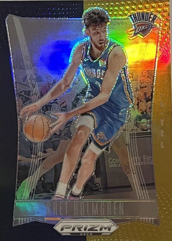 The Chet Holmgren 2023 Prizm Deca #148 Black Gold /5 card in Raw condition has not changed in price in the last 30 days and was last sold for $237.50 .