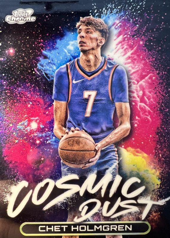 The Chet Holmgren 2023 Topps Chrome Cosmic #CD-9 Cosmic Dust /(SSP) card in Raw condition has not changed in price in the last 30 days and was last sold for $60.00 .