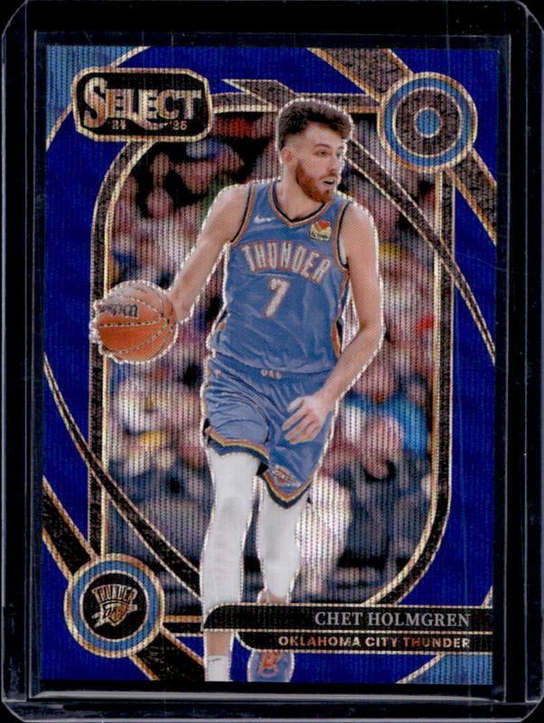 The Chet Holmgren 2024 Select #222 Courtside Blue Wave /75 card is 1 of 263 Chet Holmgren's card variations in the 2024 Select set being tracked by Sports Card Investor, including Concourse, Courtside, Mezzanine, Premier Level, and Concourse Blue Cracked Ice.