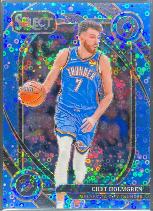 The Chet Holmgren 2024 Select #222 Courtside Light Blue Disco /99 card is 1 of 263 Chet Holmgren's card variations in the 2024 Select set being tracked by Sports Card Investor, including Concourse, Courtside, Mezzanine, Premier Level, and Concourse Blue Cracked Ice.