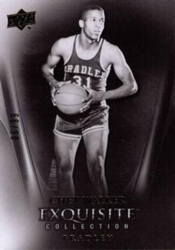 The Chet Walker 2011 Upper Deck Exquisite Collection #48 Base /99 card is 1 of 3 Chet Walker's card variations in the 2011 Upper Deck Exquisite Collection set being tracked by Sports Card Investor, including Gold /25, and Holo /1.