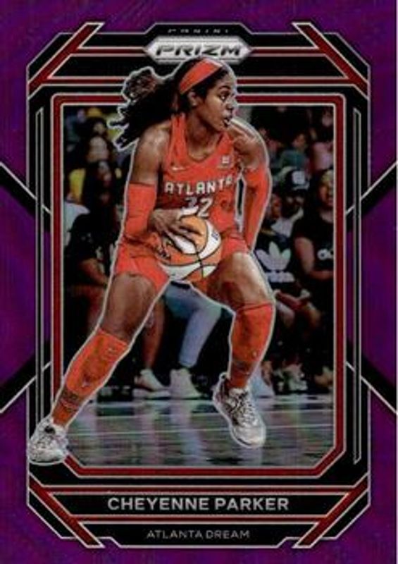 The Cheyenne Parker 2023 Prizm WNBA #117 Purple /149 card is 1 of 21 Cheyenne Parker's card variations in the 2023 Prizm WNBA set being tracked by Sports Card Investor, including Base, Blue Wave, Green, Hyper, and Ice.