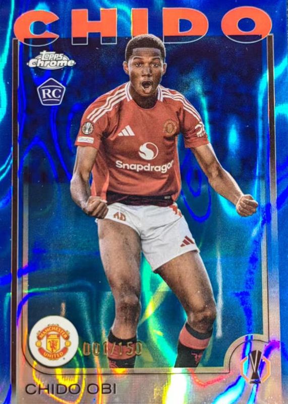 2024-25 Topps Chrome UEFA Chido Obi #14 RC Rookie Blue Lava Refractor /150