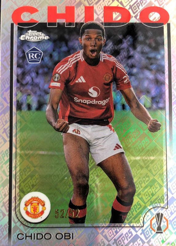 2024-25 Topps Chrome UEFA Chido Obi Toppsfractor /52 RC #14 Manchester United