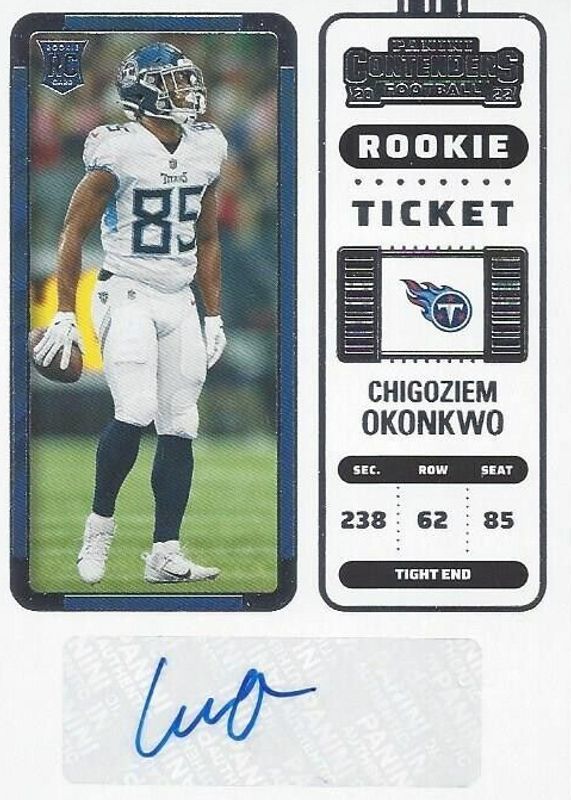 2022 Panini Contenders Chigoziem Okonkwo Rookie Ticket Auto RC #217 Titans