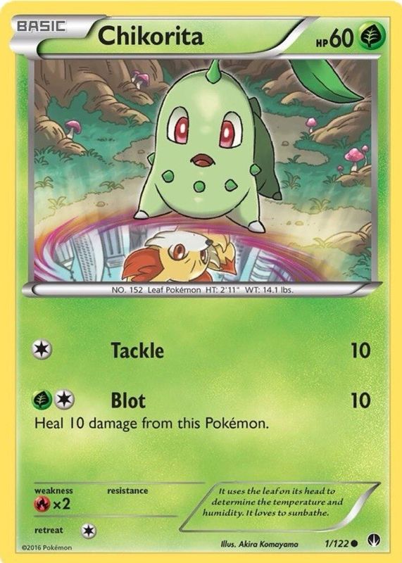 The Chikorita 2016 XY: BREAKpoint #001/122 Base card in Raw TCG (Lightly Played) condition has moved up $1.20 (+71.0%) in the last 30 days and was last sold for $2.89 .