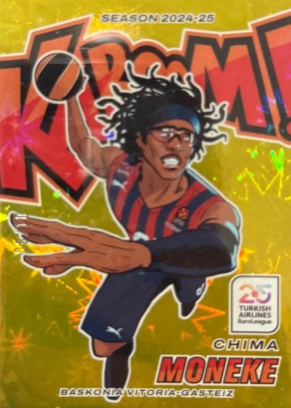 The Chima Moneke 2024 Crown Royale EuroLeague #18 Kaboom! - Gold /10 card in Raw condition has not changed in price in the last 30 days and was last sold for $449.00 .