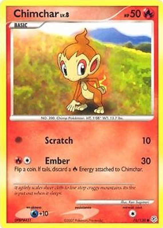 The Chimchar 2007 Diamond & Pearl #076/130 Base card in Raw TCG (Lightly Played) condition has moved up $7.55 (+422%) in the last 30 days and was last sold for $9.34 .