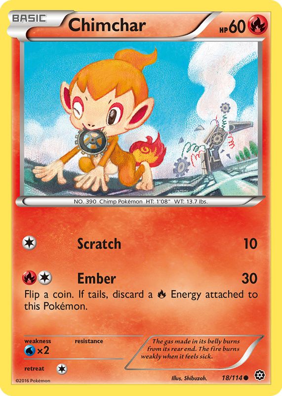 Pokémon Chimchar 18/114 XY Steam Siege Basic Regular Common 60HP 2016 Shibuzoh