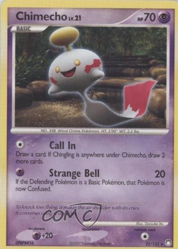 Chimecho 2007 Diamond & Pearl: Mysterious Treasures #022/123 Base RAW TCG (LIGHTLY PLAYED) Price Guide