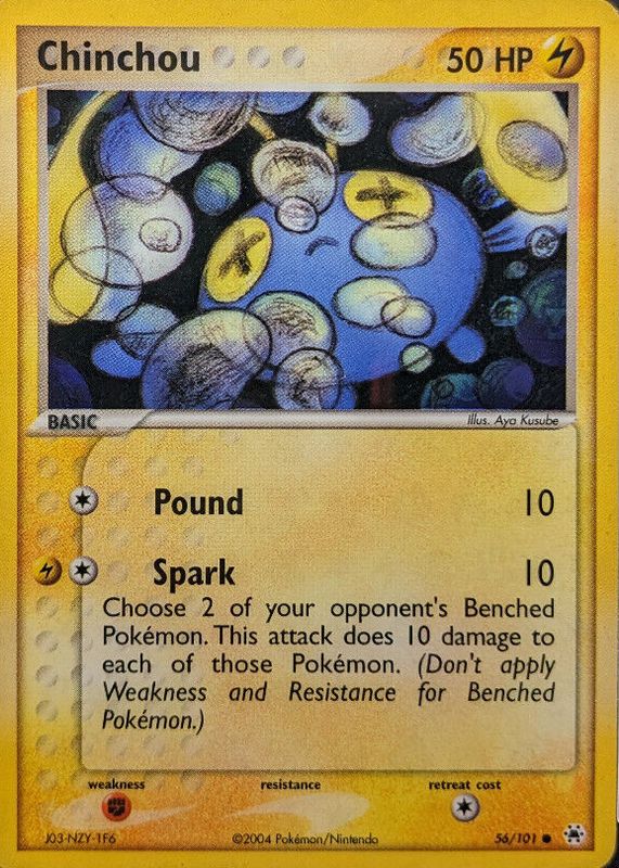 The Chinchou 2004 EX: Hidden Legends #056/101 Reverse Holo card in Raw TCG (Near Mint) condition has moved up $4.99 (+99.8%) in the last 30 days and was last sold for $9.99 .