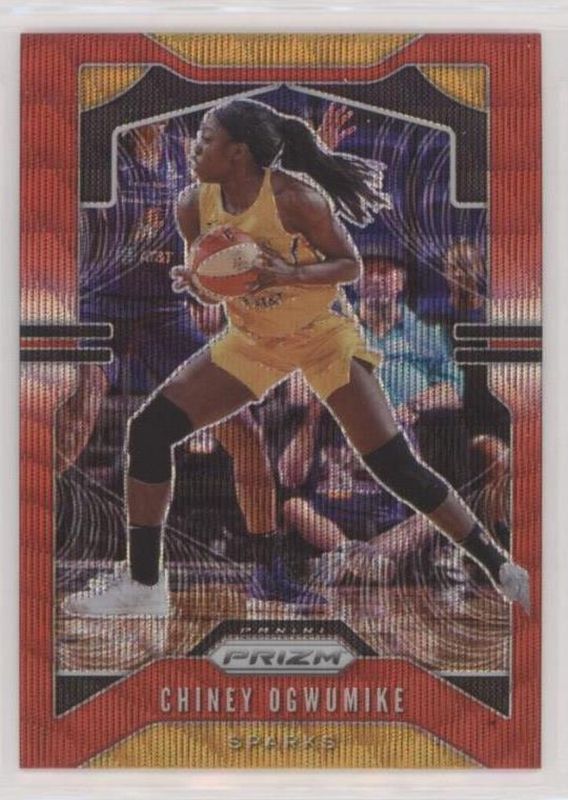 The Chiney Ogwumike 2020 Prizm WNBA #4 Ruby Wave card is 1 of 25 Chiney Ogwumike's card variations in the 2020 Prizm WNBA set being tracked by Sports Card Investor, including Base, Green, Green Ice, Hyper, and Ice.