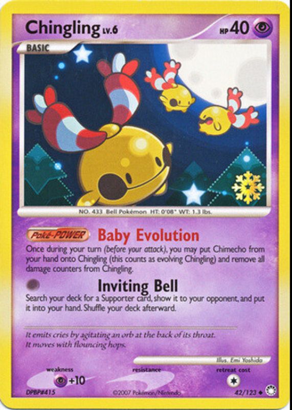 This card is 1 of 3 Chingling's card variations in the 2007 Diamond & Pearl: Mysterious Treasures set being tracked by Sports Card Investor, including Base, and Reverse Holo.