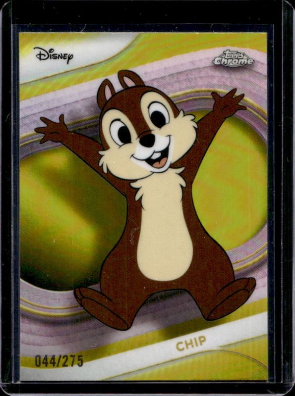The Chip 2025 Topps Chrome Disney #26 Yellow Refractor /275 card is 1 of 37 Chip's card variations in the 2025 Topps Chrome Disney set being tracked by Sports Card Investor, including Base, Mini Diamonds Refractor, Prism Refractor, Refractor, and Yellow Mini Diamonds Refractor.