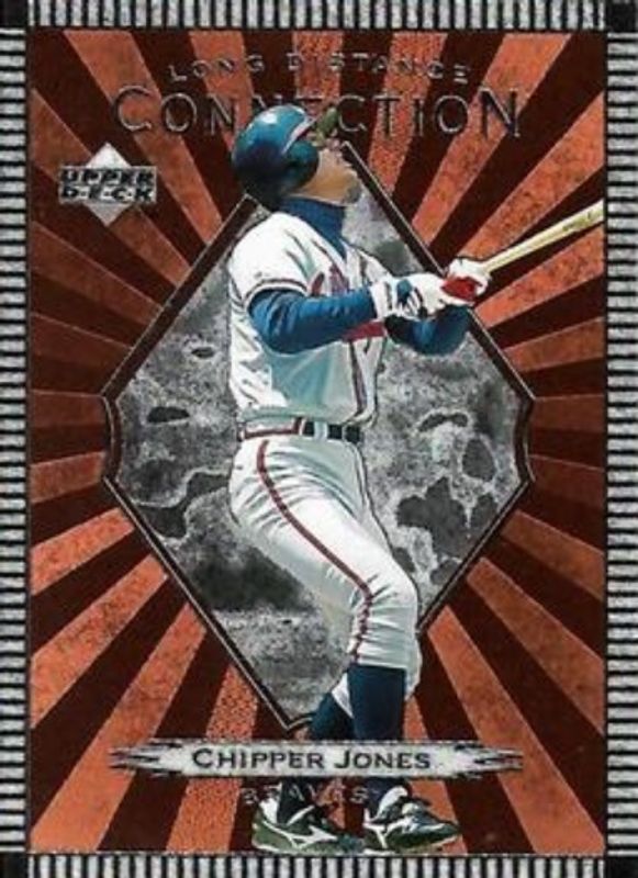 The Chipper Jones 1997 Upper Deck #LD18 Long Distance Connection card is 1 of 14 Chipper Jones' card variations in the 1997 Upper Deck set being tracked by Sports Card Investor, including #246 Base, #416 Base, #10 Base, #AG5 Amazing Greats, and #HC6 Hot Commodities.