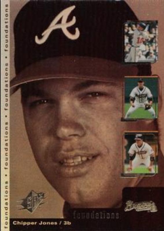 The Chipper Jones 2000 SPx #F4 Foundations card is 1 of 10 Chipper Jones' card variations in the 2000 SPx set being tracked by Sports Card Investor, including Base /1500, Radiance /100, Spectrum /1, Heart of the Order, and Highlight Heroes.