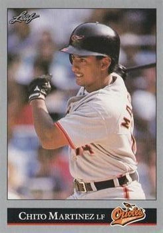 The Chito Martinez 1992 Leaf #300 Base Rookie card is 1 of 2 Chito Martinez's card variations in the 1992 Leaf set being tracked by Sports Card Investor, including Black & Gold.