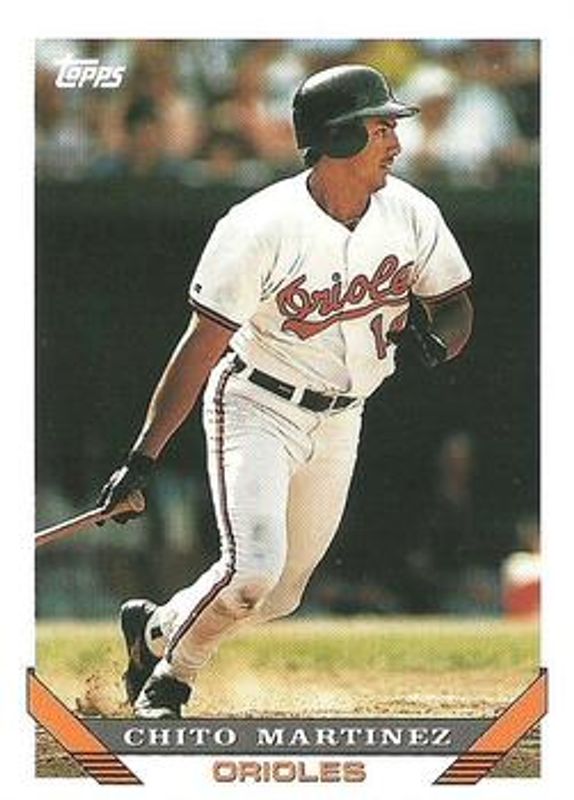 The Chito Martinez 1993 Topps #772 Base card is 1 of 2 Chito Martinez's card variations in the 1993 Topps set being tracked by Sports Card Investor, including Gold.