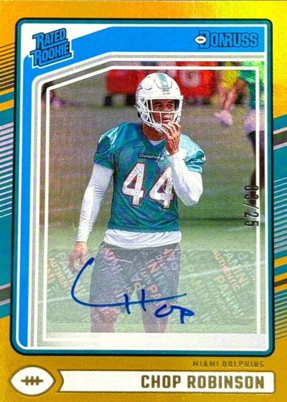 Auctions Ending Soon for Chop Robinson 2024 Donruss #351 Rated Rookie Autographs - Gold /25 RAW