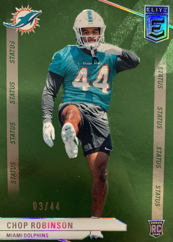 The Chop Robinson 2024 Elite #140 Status (/44) Rookie card in Raw condition has not changed in price in the last 30 days and was last sold for $6.33 .