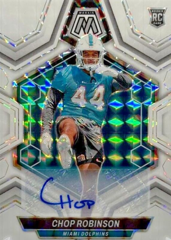 2024 Panini Mosaic Chop Robinson Rookie Auto RC White Prizm Rookie #/25 Dolphins