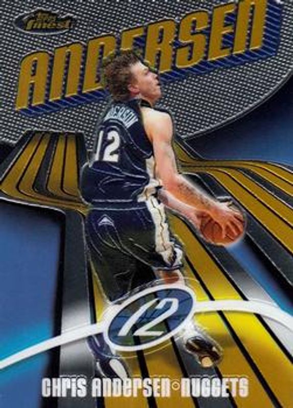 The Chris Andersen 2003 Topps Finest #13 Base /999 card is 1 of 8 Chris Andersen's card variations in the 2003 Topps Finest set being tracked by Sports Card Investor, including Refractor /250, Gold Refractor /25, Printing Plate Black /1, Printing Plate Cyan /1, and Printing Plate Magenta /1.