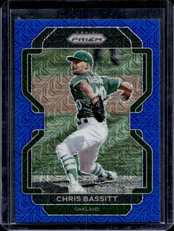 The Chris Bassitt 2022 Prizm #125 Blue Mojo /199 card is 1 of 38 Chris Bassitt's card variations in the 2022 Prizm set being tracked by Sports Card Investor, including Base, Blue, Blue Velocity, Carolina Blue, and Cosmic Haze.
