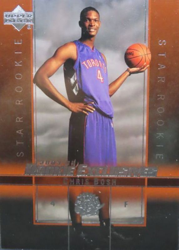 The Chris Bosh 2003 Upper Deck Rookie Exclusives #4 Base card in Raw condition has not changed in price in the last 30 days and was last sold for $0.99 .
