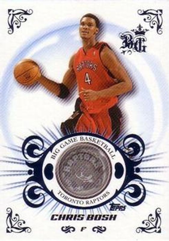 The Chris Bosh 2006 Topps Big Game #60 Blue /59 card is 1 of 14 Chris Bosh's card variations in the 2006 Topps Big Game set being tracked by Sports Card Investor, including Base /579, Red /129, Gold /1, Relics, and Relics Autographs.